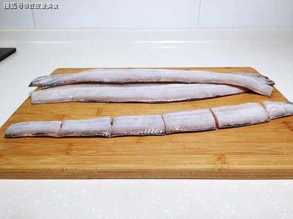 1、把带鱼的内脏和黑膜都去掉,剪掉鱼鳍,清洗干净,切成段。加入葱、姜、花椒、盐和料酒,抓拌均匀,腌制30分钟。