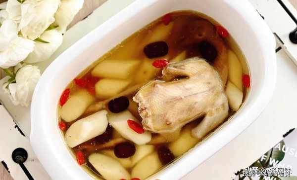 6、鸽子汤煲好后,最后加入枸杞,盖上盖子焖一会儿。喝的时候根据个人口味加适量盐调味即可。注意的是削山药皮的时候要戴好手套。