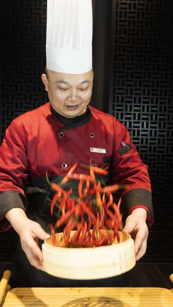 青岛涵碧楼水沙涟中餐厅川菜主厨——龚辉,出生于四川成都大邑,有着超过20年的烹饪经验。龚主厨擅长烹饪中餐,尤其专精川菜多年,作为地地道道的四川人对川菜文化有丰富的理解,招牌菜:酸菜金汤龙利鱼和川味香辣蟹更是受到食客的喜爱。龚厨曾荣获国家二级厨师,川菜名厨等称号。并曾担任过星级酒店行政总厨助理和餐厅主厨等职位。