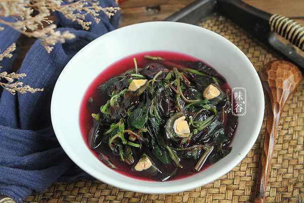 【食材】:苋菜 适量、盐 1小勺、胡椒粉 少许、姜蒜 适量、皮蛋 适量、