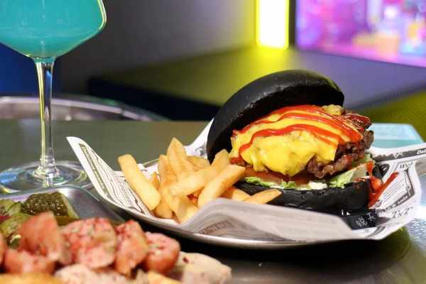 芝士牛肉汉堡,取材和牛,独特的颗粒感,加上厚芝士,真材实料,一个下肚,十分满足。