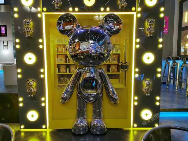 门面精致,装饰时尚,充满潮流艺术感,一进门就被一人高的暴力熊吸引了目光,原来还能抽潮玩盲盒呢,真好玩!