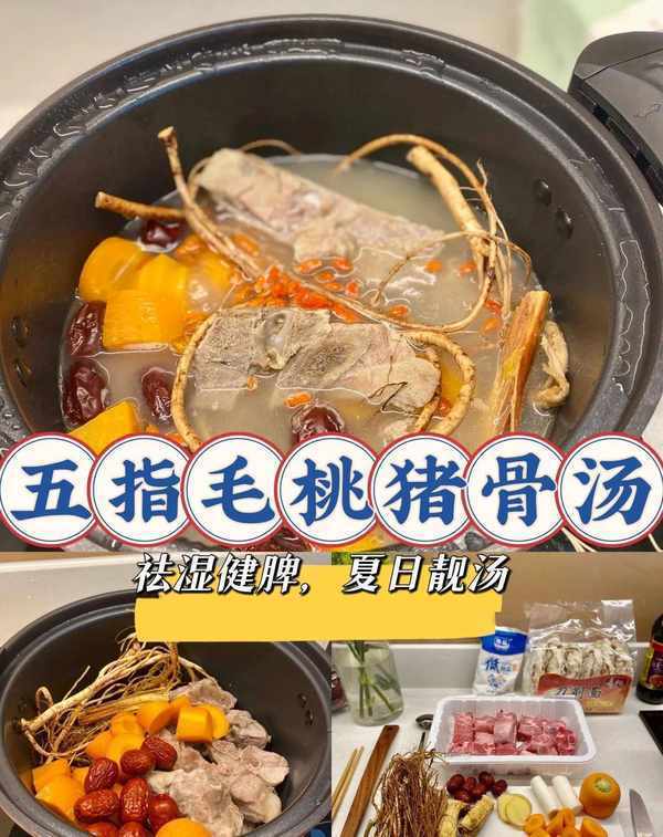 【桃花五指猪骨汤】主要原料:猪骨、红枣、枸杞、桃子、胡萝卜、盐。北方的朋友可能对五趾桃不太熟悉,但对广州来说却是老熟人了。五芝茅桃花猪骨汤味甘,健脾胃。周末做一壶,放冰箱冷冻。以后的几天,再加热后就可以喝汤了。