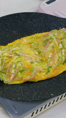 先煎一个拥有超级多蔬菜的鸡蛋饼,比直接塞菜叶子更隐蔽,孩子挑菜的可能性就更低了。
