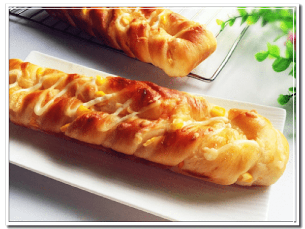 材料:高筋面粉300克,鸡蛋150克,黄瓜,玉米粒,沙拉酱各75克,黄油50克,砂糖40克,鲜酵母盐各5克。