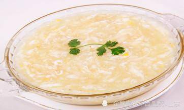 玉米汤料罐头(粟米羹)1/2罐,鱼肚(鱼鳔)160克,鸡蛋1个,香菜(芫荽)1棵,大葱1根,姜汁酒1汤匙,高汤或清水1.2升,太白粉(生粉)1汤匙,盐1茶匙,糖1/2茶匙,胡椒粉适量,麻油少许