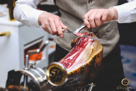 5J火腿携手助力2023年黑珍珠餐厅指南全球榜单发布会暨颁奖典礼,今年已是第二年与黑珍珠餐厅指南完美合作,为来宾呈现了一场奢华美食盛宴。作为时光与自然带来的美味艺术,5J火腿使用世代相传的传统工艺,在百年火腿窖中匠心打造,每一条5J火腿至少经历5年的自然过程,以呈现出浓郁坚果香气及丰富味觉层次。不论是发布会现场还是晚宴,凝聚西班牙风味的5J火腿均为在场宾客留下了深刻印象。