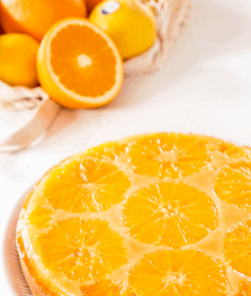 2个新奇士脐橙,切片(1英寸厚)、1/3杯糖、2汤匙蜂蜜、3汤匙无盐黄油、2杯万能白面粉、2茶匙发酵粉、1/4茶匙盐、1个新奇士脐橙、2个鸡蛋、1/2杯橄榄油、1杯糖、1/3杯牛奶(牛奶或植物性替代品)、 1/2茶匙杏仁提取物