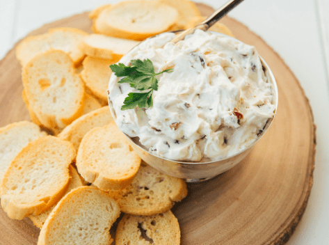 3盎司山羊奶酪,软化、2包奶油芝士,软化、1/2杯鲜榨新奇士橙汁、1 汤匙新奇士橙皮、2汤匙蜂蜜、1/2杯切碎的蔓越莓干、1/2杯切碎的烤核桃、1/2 茶匙盐