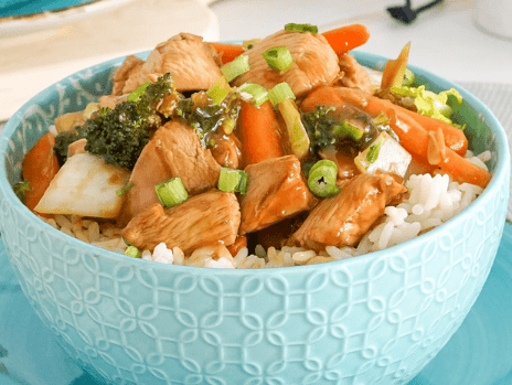 鸡肉炒菜:3 个鸡胸肉,切块、姜块,切碎、1 瓣大蒜,切碎、1杯白菜,切碎、3/4杯小胡萝卜,切片、2 茶匙玉米淀粉、2 汤匙水、特级初榨橄榄油、1 茶匙芝麻油、1 个新奇士脐橙