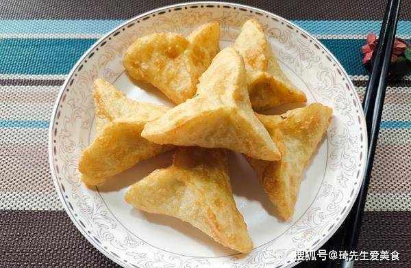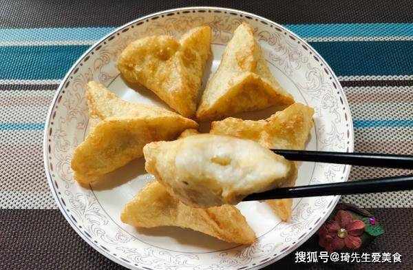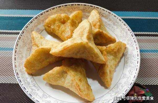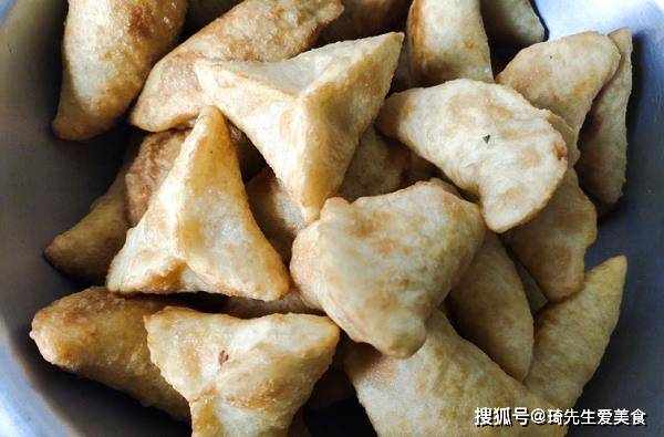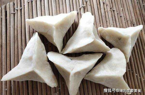 5、传统的糖糕会制作成这种三角形,如果不会捏,可以制作成饺子形状,都是没有什么影响的。