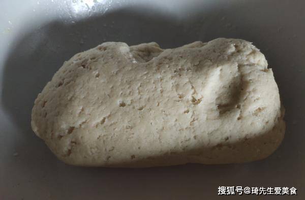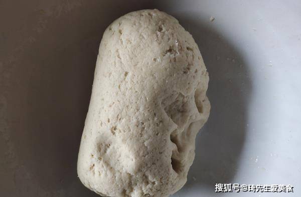 3、面团醒发几分钟,你会发现凹痕已经变浅,这个时候就可以拿出来盘揉,手掌适当的蘸点油脂,这样面团不容易沾手。