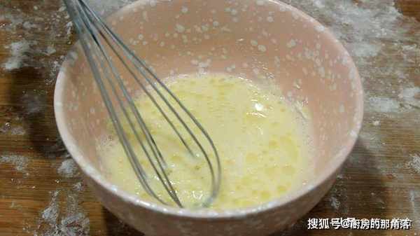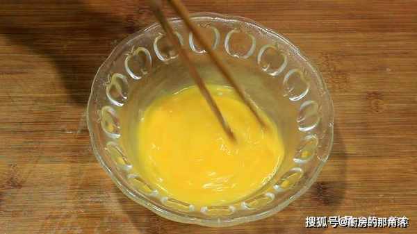 2.饧面的时间我们准备馅料,碗中打入两个鸡蛋,加入芝麻香油5克,食盐1克入底味,搅拌均匀。