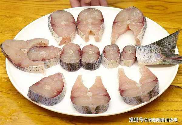 洗干净以后,切成一厘米厚的鱼块,均匀地码放在盘子里面。