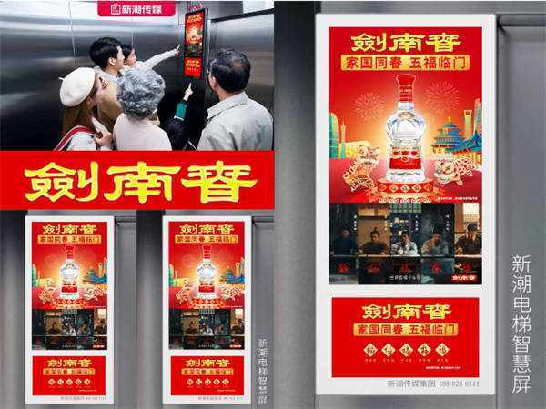 作为白酒品牌中的佼佼者,剑南春已连续三次蝉联中国名酒称号。这次,剑南春以品牌高度和深厚内涵打造出的“家国同春·五福临门”系列营销活动更具有代表性,为白酒行业春节营销带来了新惊喜。剑南春全面霸屏新潮传媒,除占据社区场景外,更通过新潮纯商务网瞄准商务场景,对标高净值商业人群展开品牌宣传,让“茅五剑”的品牌印象深入人心。