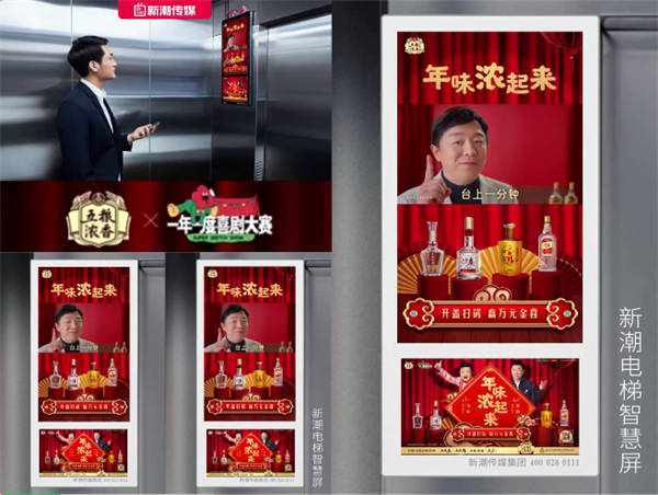 五粮浓香旗下战略品牌,包括五粮春、五粮醇、五粮特曲、尖庄在春节期间唱响了一系列营销大戏,不仅携手黄渤、马东开启新春小剧场,更以“一瓶一码”送“万元金喜”引发一波全民开盖热情。通过新潮传媒的精准投放,将浓浓的年味带入离家最近的社区电梯里。