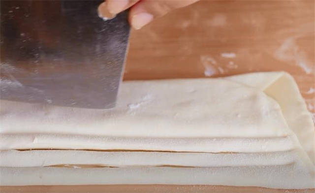 7.叠好了就开始切细长条,注意两端的位置不要切断。