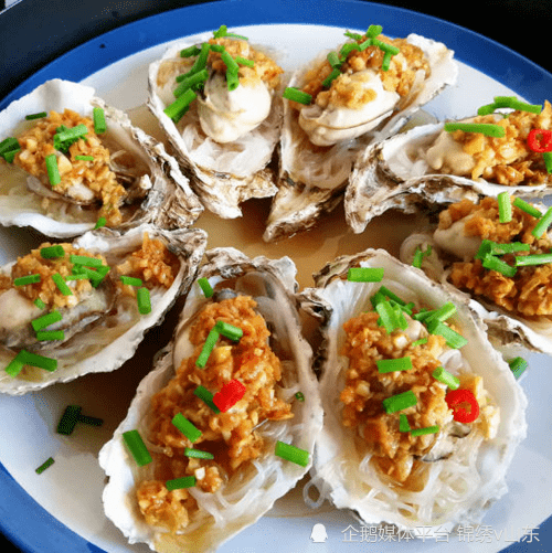 4、接着再将生蚝摆放好,均匀淋上蒜蓉酱,水开上锅蒸5-8分钟。蒸熟之后,撒上葱花点缀即可上桌。
