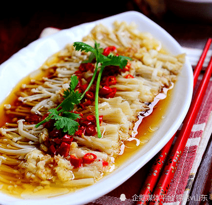 9 将酱油汁倒在蒸好的泡菜金针菇上即可。