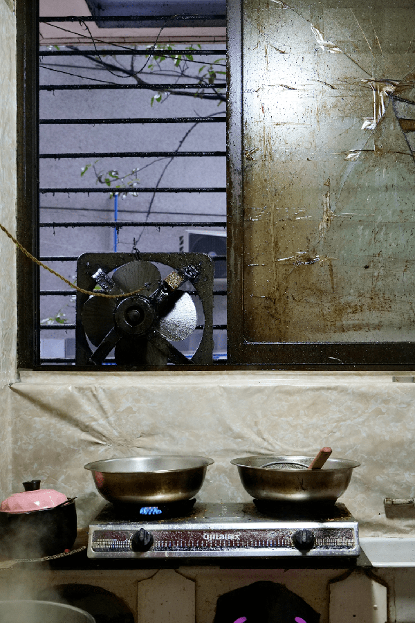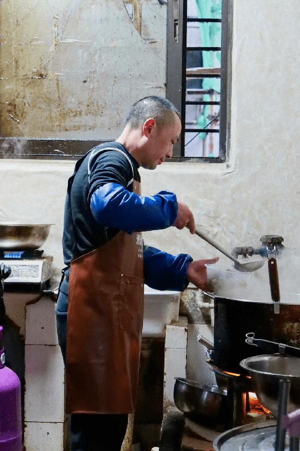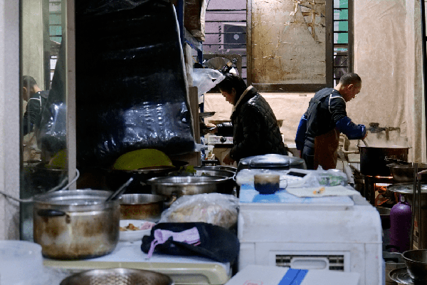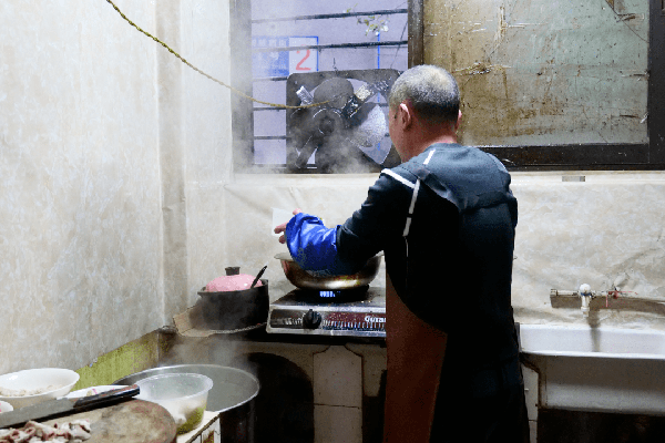 说话时,朱姐一直笑,一直笑。就像李哥在后厨时,也是一个劲乐呵呵的、用熟练的四川话说“我这里都没有收拾开。”“还有三个娃娃要盘。”