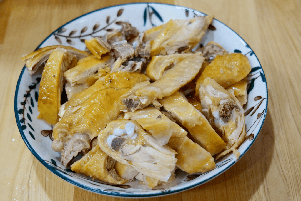 李哥坦诚,用的只是成都本地市场上买来的鸡,采用老家的做法,最简单的盐巴激发肉的鲜,咸味适宜,口感不水不柴,它仍然不失为一只优秀的白切鸡。