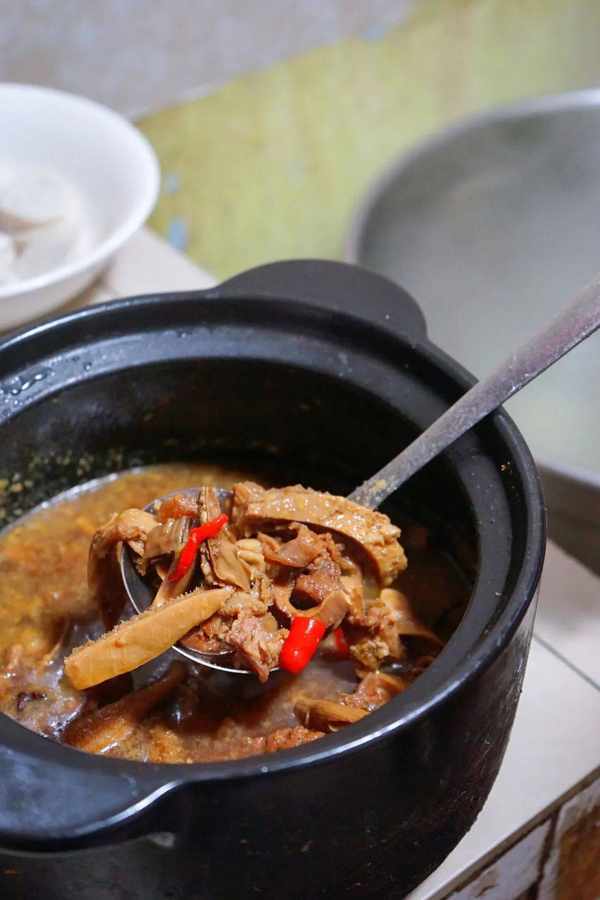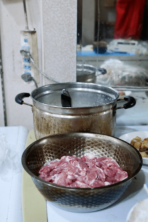 本来我看见锅中花式翻滚的萝卜,很爽,还想要舀一块来吃的。李哥一把劝住,“吊汤用的,没味。”