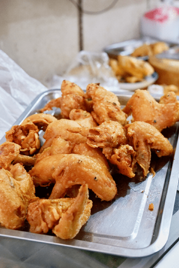 和市面上网红的韩国炸鸡相比,风格完全不同。炸鸡翅采用的是汕头那边的做法,稍微裹一点淀粉腌制后,再炸。