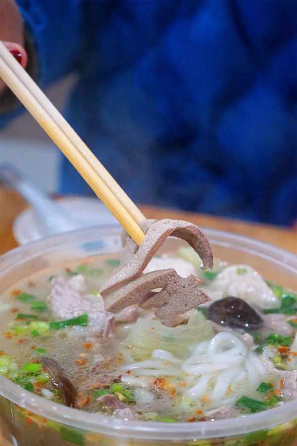 猪杂粿条的汤底,清淡不油,品得出萝卜的丝丝清甜香。