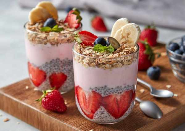 1.杯中底层加入羊奶和奇亚籽混合粘稠的酱
