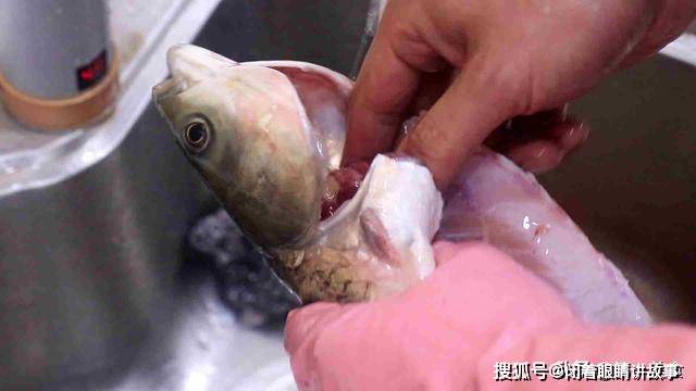 1.首先我们准备一条新鲜的草鱼,剪去鱼鳍刮去鱼鳞用剪刀剪开鱼腹,去除内脏鱼鳃和牙齿,草鱼的牙齿是腥味的一大来源一定要去除,然后把腹部的黑膜和身上的黏液,仔细刷洗干净后准备改刀。