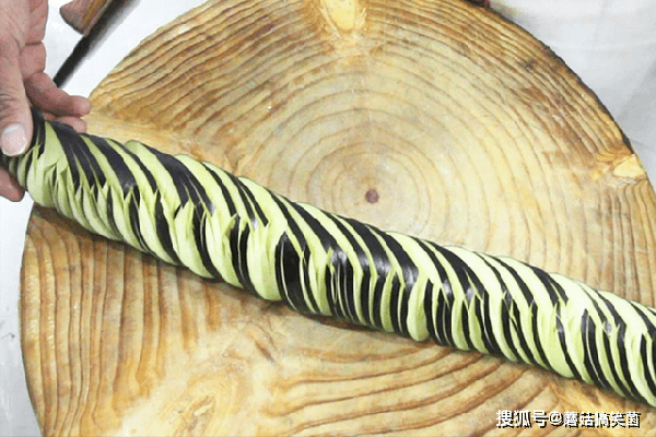 准备一根长条紫茄子,洗干净以后在两边垫上筷子,斜刀45度从头切到尾,再翻个面垂直着切,切成这种连而不断的茄龙。