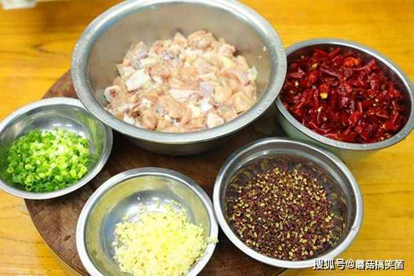 做辣子鸡最好是用鸡翅和鸡腿,肉多骨头少、口感好,分别洗净、剁成2厘米左右的小块,然后加食盐、味精、胡椒粉、料酒去腥,抓拌均匀腌制10分钟给鸡丁码味;再多准备点干辣椒段,抓进去一小把麻椒,用清水洗一下,去除辛辣味和燥性。