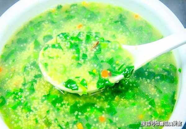 熬制期间,要把锅中的浮沫打干净,这样煮出来的小米羹,会更加的晶莹清澈,大约熬制3分钟,小米开花以后,把芥兰倒入锅中搅拌均匀,继续煮至小米羹微微烧开,勾入半勺芡粉,把小米羹调得稠一点,以免过于寡淡,用勺子快速搅匀,小米羹再次煮开后即可出锅,一道清淡养生的青菜小米粥就做好了。
