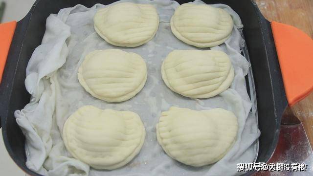 做好的豆沙包像极了一个小小的贝壳,折好以后把周围按一按照这个方法 ,把面皮全部这样包上红豆沙,盖上保鲜膜醒发20分钟。