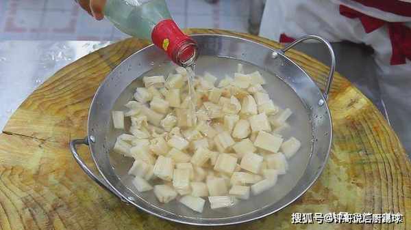 锅里烧水,水开后把藕丁倒进去。