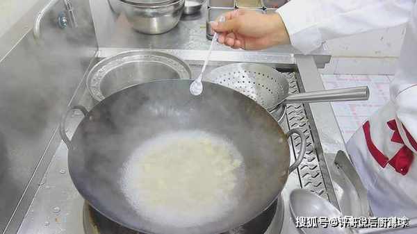 锅里烧油,烧至7成热时(冒烟)。如图所示。