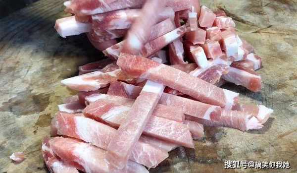 1、首先将里脊肉切条备用,大家可以冰冻一些再切,容易定型。