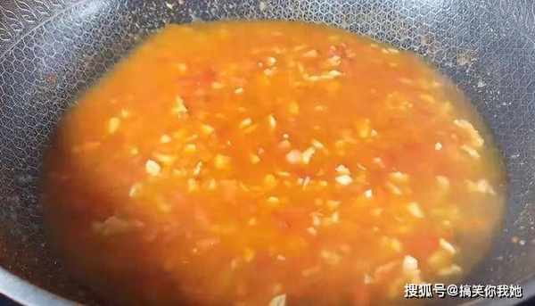 10、做好的番茄汁,倒在金针菇上。