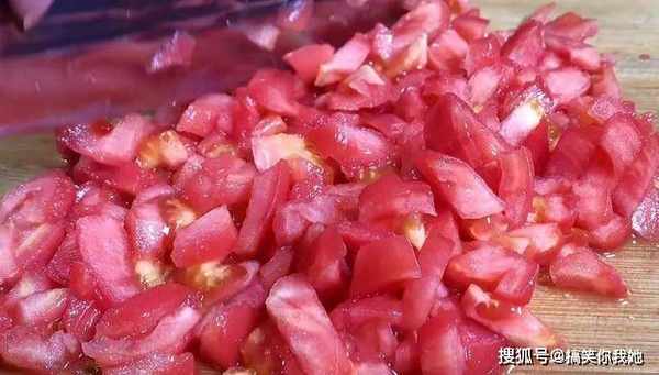 2、番茄切碎备用。
