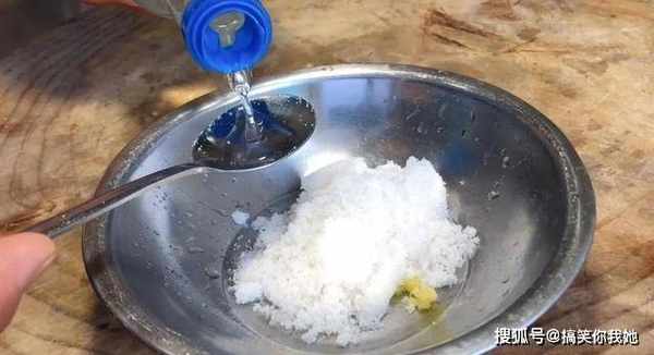 5、接着在碗中放蒜末、食盐、砂糖、白醋。