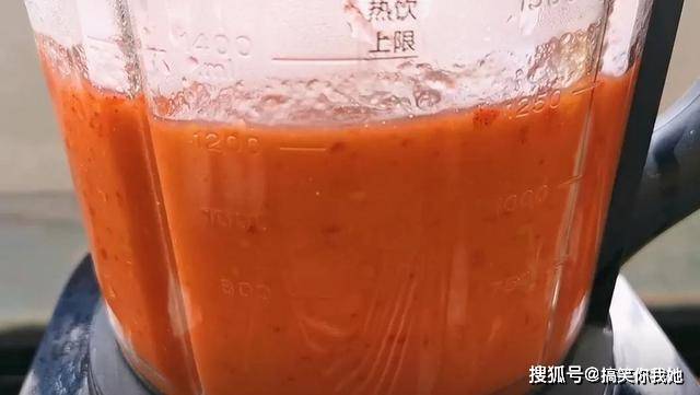5、煮熟的山楂苹果,放在榨汁机中,将它们搅碎。
