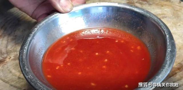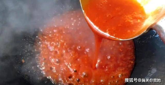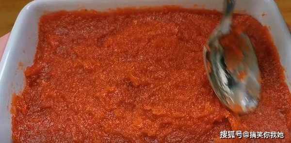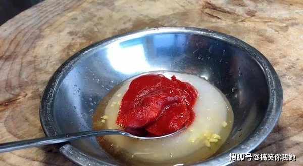 6、再添加一大勺番茄酱,混合均匀。