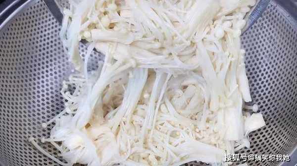 3、金针菇洗净散开,热水下锅焯水5分钟捞起。