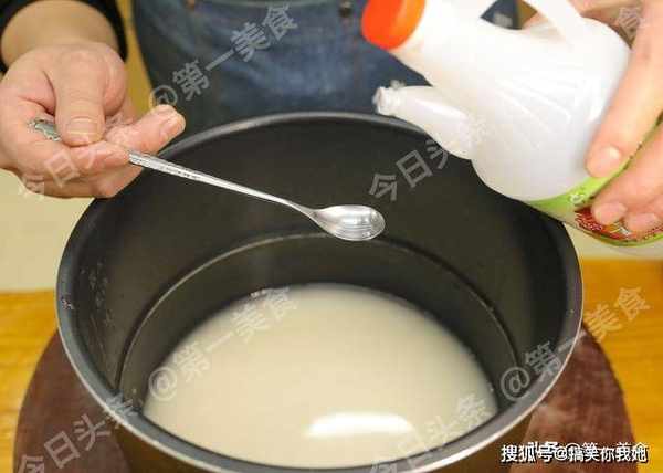浸泡好以后,把米倒入电饭煲里面。