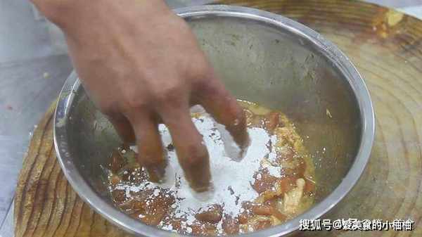 搅拌均匀,再打入一个鸡蛋,顺着一个方向给肉丝搅拌上劲,再撒入干淀粉。