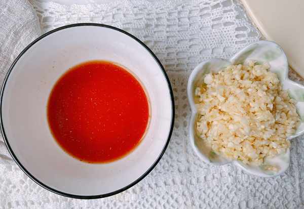 4、芦笋大火爆炒会更好吃,所以需要提前准备一个料汁,碗中加一汤勺清水,少许料酒、一点点生抽、一小勺食盐、少许白胡椒粉,搅拌均匀,再准备一些蒜末,蒜末的用量稍微多一些,芦笋和蒜末是很好的搭配,香味会更浓郁。