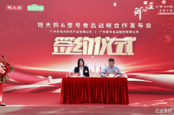 仪式上,钱大妈与壹号食品共同签署了战略合作协议,双方将合作推出新品“昨天下的土鸡蛋”,并将充分发挥各自优势合力搭建新品的销售渠道,以“鲜”入手展开深度合作,为粤港澳大湾区消费者带来鸡蛋消费升级的新场景、新体验。