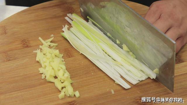 大葱白几根洗净以后先切成细丝, 再改刀切成葱粒然后剁碎,放在一个小盆中。