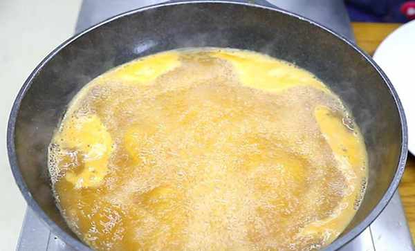 2.锅内加入适量的植物油,放入虾头,开小火慢慢炸,经常用挤出里面的虾油,闻到浓郁的鲜香味以后放入葱段、姜片,继续翻炒一会儿去除腥味,一直把虾油熬至咕嘟冒泡,加入适量的清水,盖上锅盖,转大火多烧一会儿。