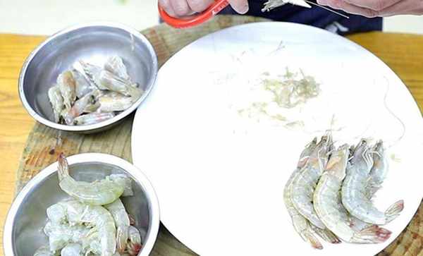 1.准备适量的鲜虾,剪去虾须虾腿,把虾头和虾肉分离分别装入碗中,这里的虾头不要扔 一会儿用来熬虾油;切点小葱白、生姜片、葱花备用。